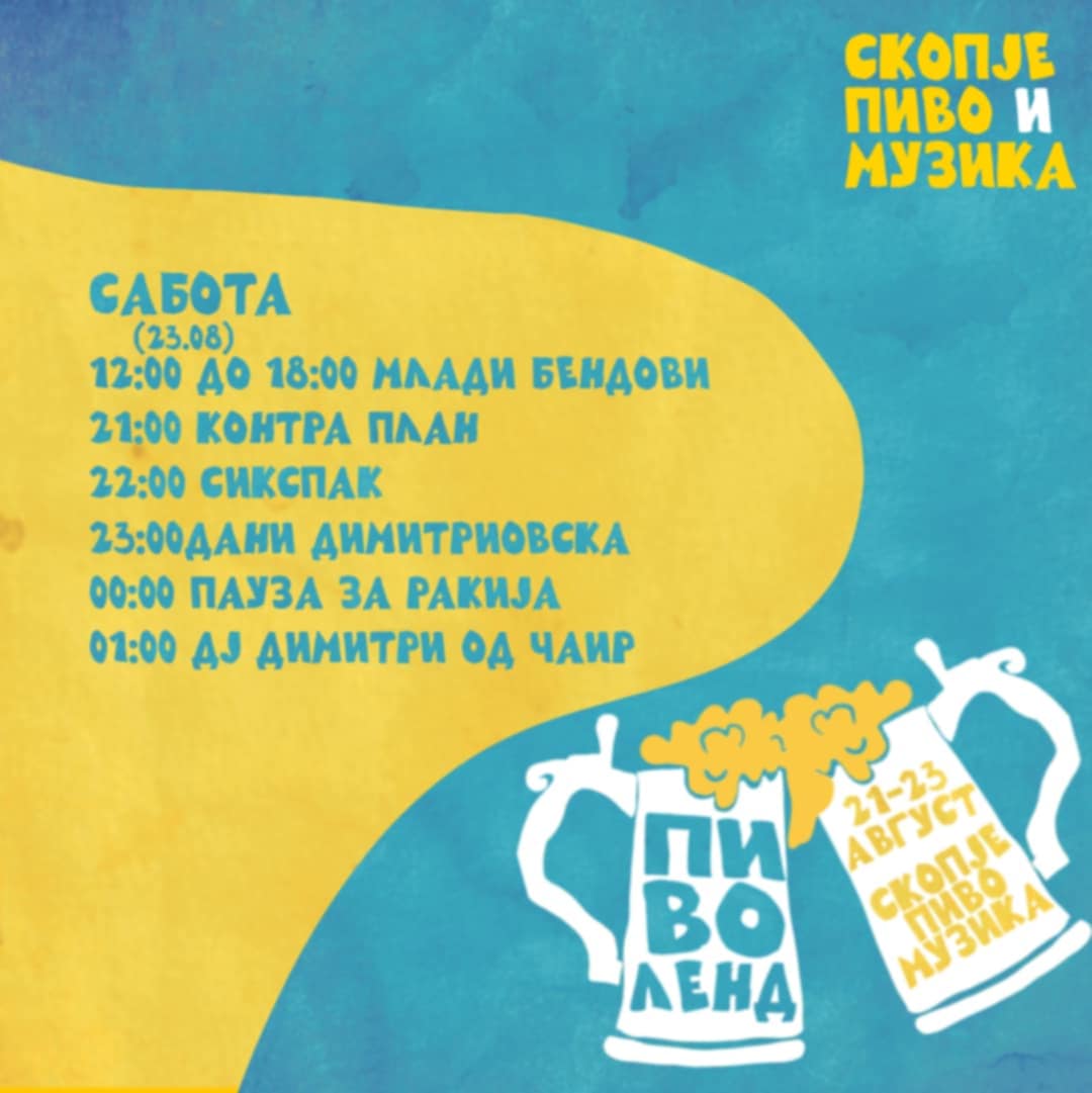 Во сабота фестивалот се отвара со млади бендови, следуваат Контра План, србските легенди на панк-рок СИКС ПАК, Дани Димитровска, Пауза за ракија и Диџеј Димитри од Чаир.