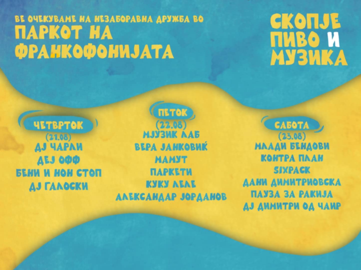 На 21, 22 и 23 Август во паркот на франкофонијата ќе се оддржи 14-тото издание на фестивалот Пиволенд кои низ годините веќе традиционално се смета за еден од белезите на Скопје.