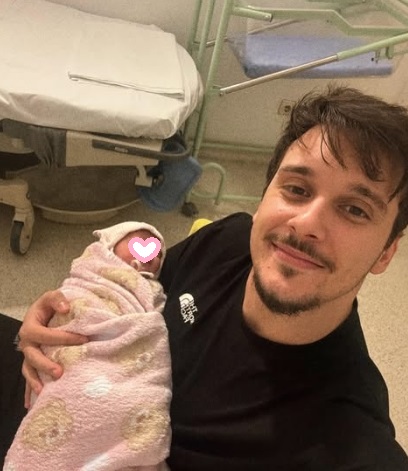 Александра потоа објави фотографија од клиниката, на која Стеван го држи бебето во рацете.