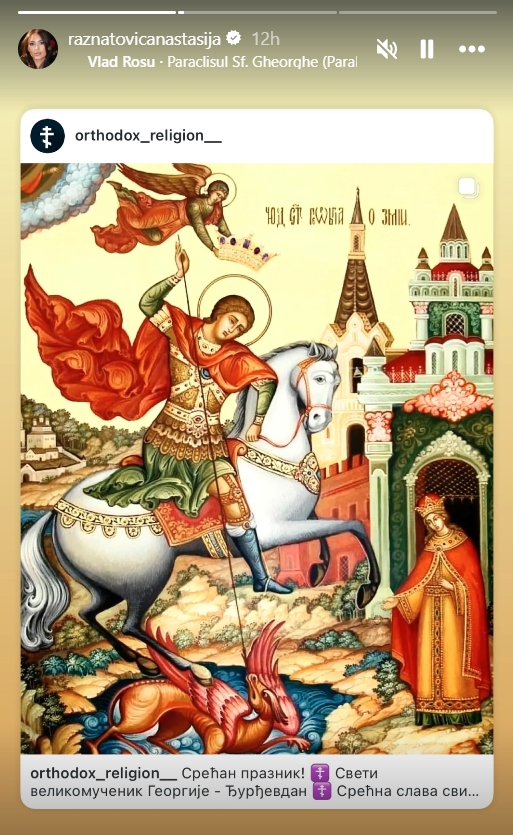 По тој повод таа сподели слика од икона на Свети Ѓорѓи како убива ламја.