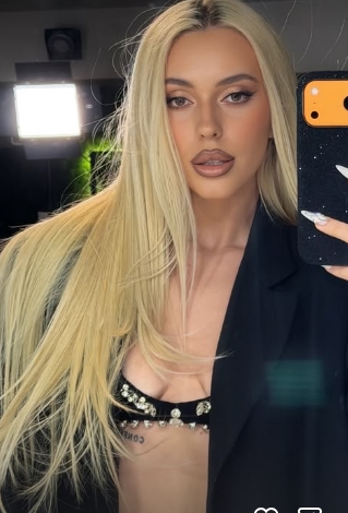 Секси минијатурен градник, односно транспарентен горен дел од бикини, стајлинг веројатно за настап, а за загревање снимаше видео на кое танцува задодливо.