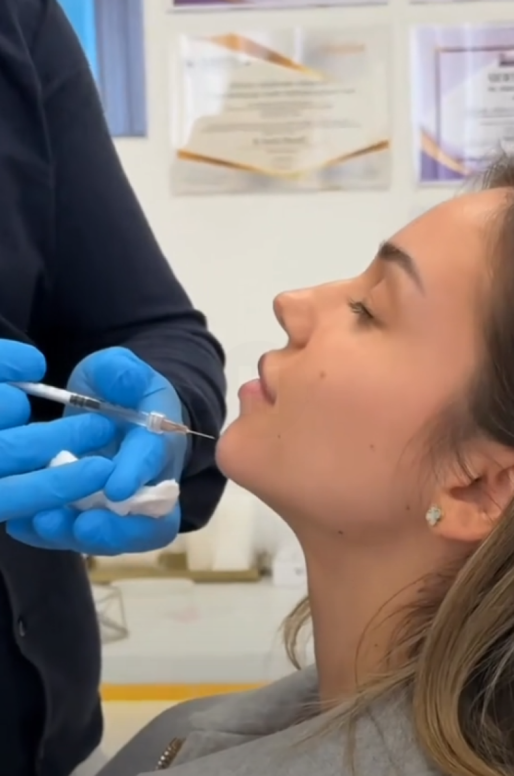 Имено, Бресквица и вбризгала хијалурон во брадата за малку да ја зголеми и да и изгледа многу поубаво во профилот на лицето.
