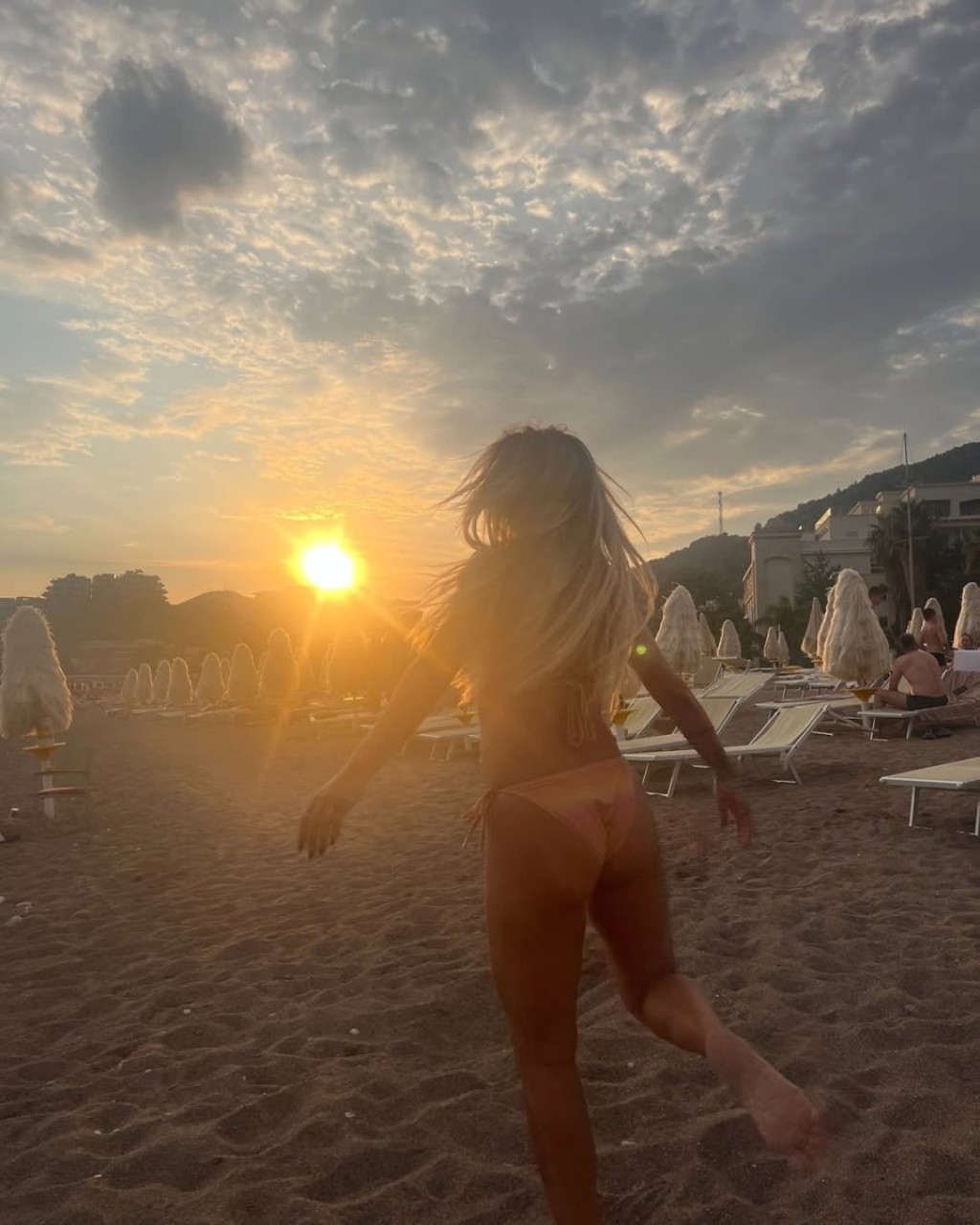 Имено, таа седеше на песок, со раширени нозе, што ги остави мажите без зборови. Во преден план беа нејзините гради, како и нејзините затегнати нозе без ни трага од целулит.