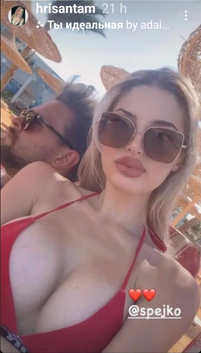 Потоа харизматичниот кумановец влета во нова љубовна авантура, која заврши со сериозна врска. Некое време беа заедно дома, во Македонија, за потоа нивното „love story“ да продолжи во Обидените Арапски Емирати каде Спејко ќе се опроба да работи како кошаркарски и фитнес тренер, додека таа – расната, телесно надарена, природно цицлеста пробиштипјанка Хрисанта Монева како агент за недвижности.