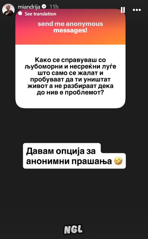 „Давам опција за анонимни прашања“ – напиша Миа и додаде смајли кое плаче од смеење.
