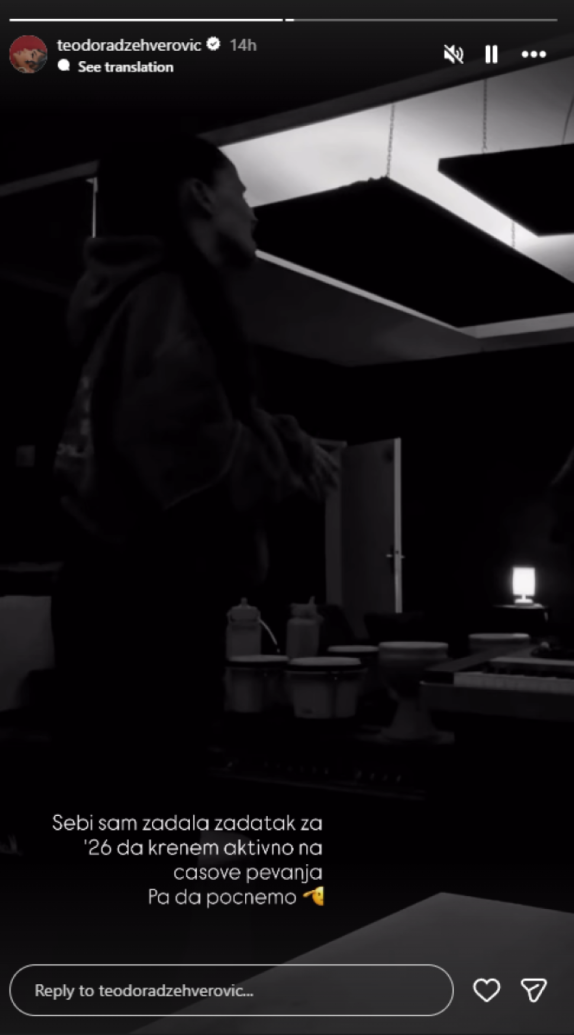 „Задачата што си ја поставив за 2026 година е активно да почнам да земам часови по пеење. Време е да почнеме“, напиша Теодора на Инстаграм.