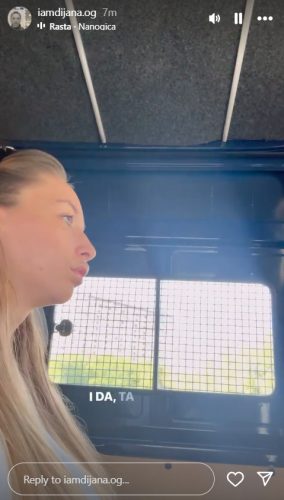 На видеото можеше да се види како Дијана ја возат во полициско комбе, популарно наречената „Марица“ чии прозорци се затворени решетки, додека во позадина „врти“ песната „Наногица“ од исто така неодамна во Охрид апсениот нејзин српски колега, Раста!