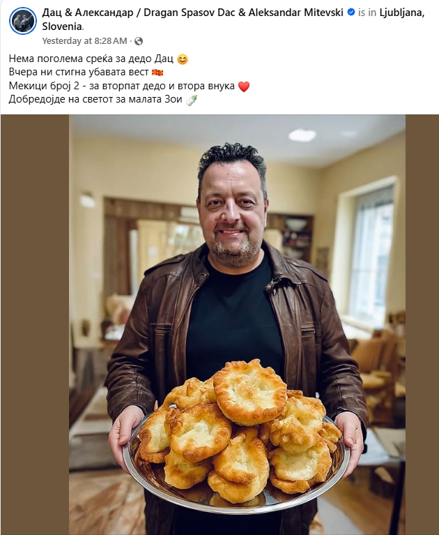 А, на дедо Дац не му преостана ништо друго, освен по радосната вест да напраи само едно… Да чести мекици за доаѓањате на свет на внуката Зои!