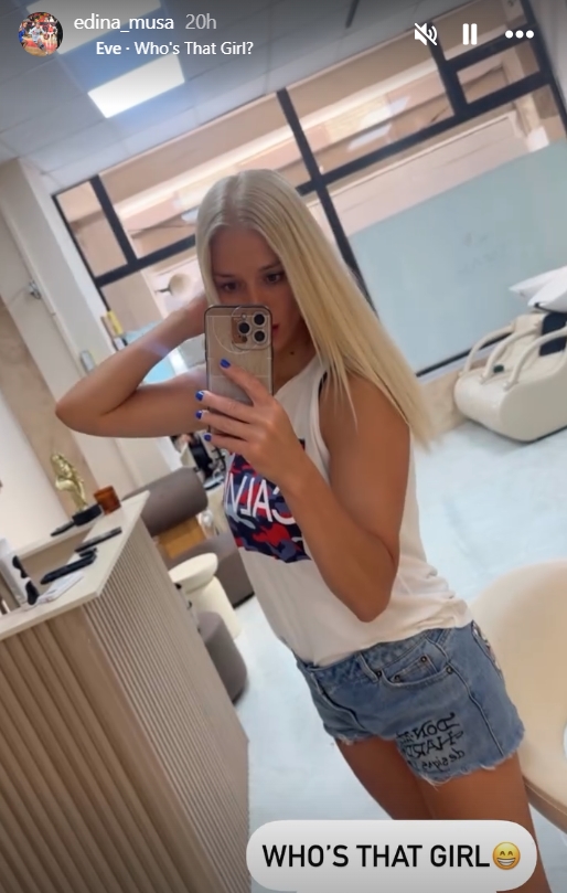 Едина ја покажа новата промена, од која очигледно беше многу задоволна, па се пошегува дека дури и самата не се препознала и на видеото напиша „Која е оваа девојка?“, препознавајќи се во зборовите од песната „Who’s That Girl?“.“