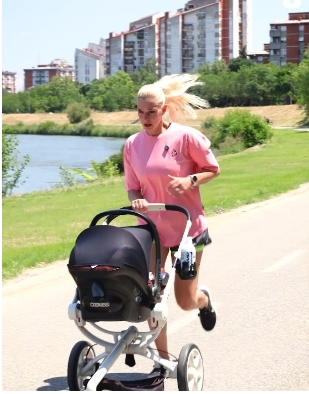 Нејзин фокус сега е синчето Максим но, нема изговор дека и недостаува време за вежбање, па со него оди на трчање на стаза на кејот на Вардар со количка.