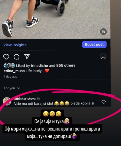 Имено, Едина по една своја фото објава која ја постави на Инстаграм, а на истата ја турка бебешката количка, згодната и атрактивна мама доби негативни коментари кои ја изиритираа и вознемирија.