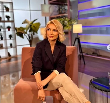 Покрај тоа, таа објави и фотографија на која позира во елегантен црн фустан со деколте, наздравувајќи со чаша вино, што дополнително ги заинтригира нејзините следбеници.