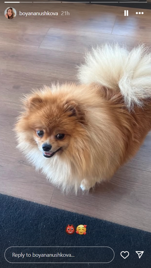 Инаку, долгоногата манекенка и модел, Бојана Нушкова е љубител на животните и често го фотографира својот миленик и го носи со себе. Така беше и сега но овој пат освен кучето што го улови во кадар имаше уште некој друг.
