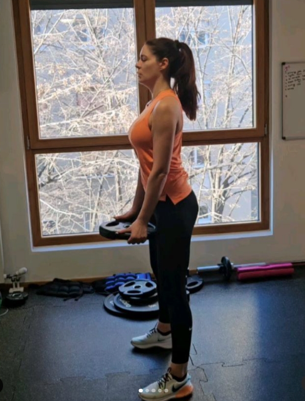 Иако неодамна се породи, Сања изгледа како никогаш да не излегла од теретана.
