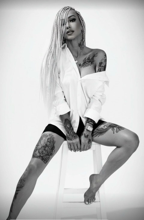 Долгите руси плетенчиња ја надополнуваат нејзината несекојдневна појава, а тетоважите поцелото тело и екстремитетите само го засилуваат впечатокот на секого кој штом ја погледне јасно му е одма дека Јасмина е „еротска тату бомба“!