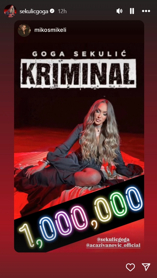 Според фановите на Гога, песната „Криминал“ потсетува на нејзините стари хитови, па затоа не е изненадување што фановите ја почестија со милион прегледи на музичката платформа Јутјуб за само неколку дена. За десет дена, Секулиќ ќе тргне на летна турнеја, во рамките на која ќе ги има повеќето свои настапи на црногорското и хрватското крајбрежје, но нејзините лојални обожаватели ќе можат да ја видат и во други градови низ регионот.