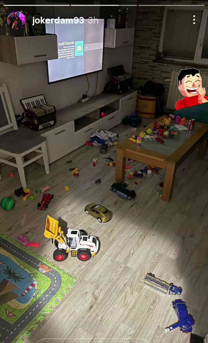 Арно ама, на тато Џокер и не баш ова му пречи, наптотив за него овој хаос од играчки е смешен, барем таква беше реакцијата поставна на објавеното „стори“.