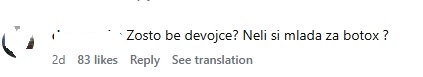 „Зошто бе девојче, нели си млада за ботокс?“ -стои во еден од коментарите кој наиде и на уште многу реакции како согласност.