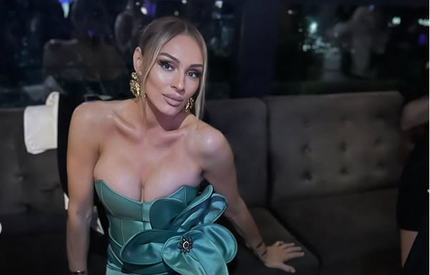 нозете во преден план Сања Маринковиќ во свилен фустан, без градник: Водителката ги почести следбениците со жешко издание