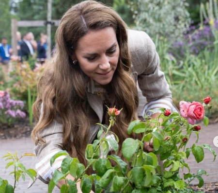 Принцезата од Велс, 43, ја посети болницата во Колчестер, Есекс, на 2 јули за да помине време во специјално дизајнираната Градина за благосостојба, која обезбедува простор за закрепнување за пациенти, персонал на NHS и посетители.