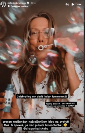 – Го славам роденденот на мојот татко. Се чувствувам благодарна и благословена. Среќен роденден на најсаканото суштество на светот. Додека ти спиеш, јас веќе дувам меурчиња – гласеше пораката на ќерката на познатата пејачка.