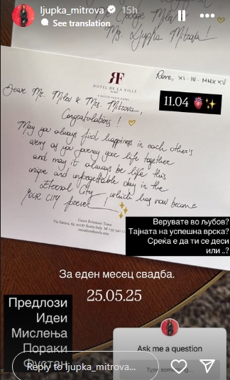 фото:Instagram printscereen/ljupka_mitrova