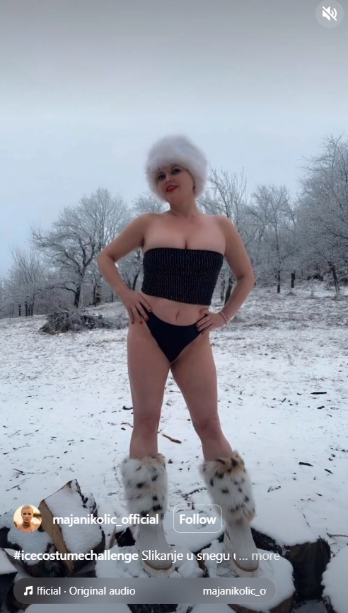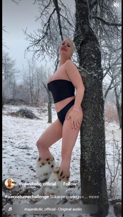 Српската пејачка Маја Николиќ е секогаш подготвена да привлече внимание со своите постапки и изјави, а сега објави фотографии на кои ја гледаме во гаќи и црна маичка со гол стомак како позира во снегот.