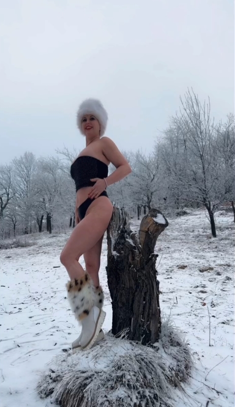 Имено, на Маја не ѝ беше гајле што надвор е студено и врне снег, па се соблече и излезе надвор да се фотографира.