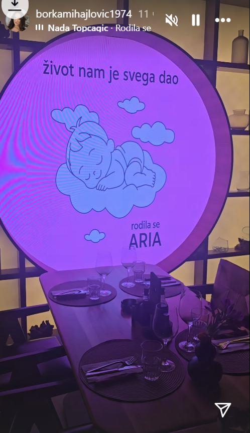 Пејачката Александра Пријовиќ ја роди својата ќерка Арија во приватна клиника, а во ресторан, Живојиновиќ организираа свечена прослава.