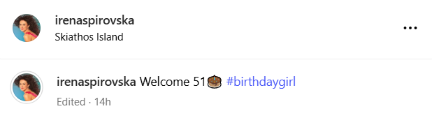 Македонската водителка Ирена Спировска го прослави својот 51-ти роденден во Грција, а доказ за тоа се фотографиите кои ги објави на социјалната мрежа Инстаграм.