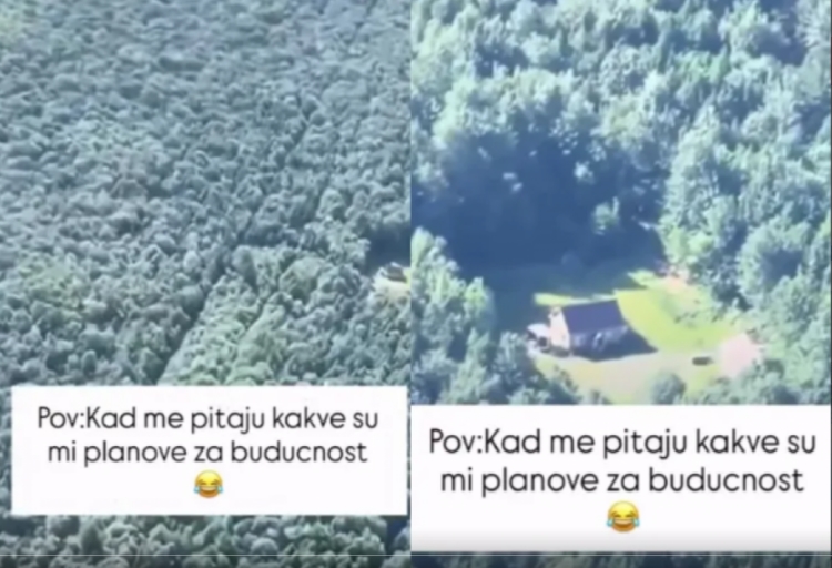 Имено, Марија се пошегува и објави видео од куќа среде густа шума со текст „Ќе изградам куќа некаде во планината“.