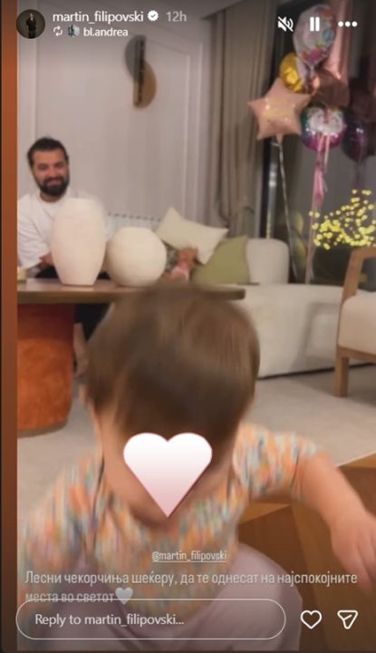 Гитаристот на братското дуо „Некст тајм“, Мартин Филиповски пред една недела објави дека неговата ќеркичка Лиана го прославила првиот роденден. Мартин, заедно со сопругата Андреа Белеска направија фотосесија со славеничката, а музичарот тогаш напиша: „Една година бескрајна среќа“.