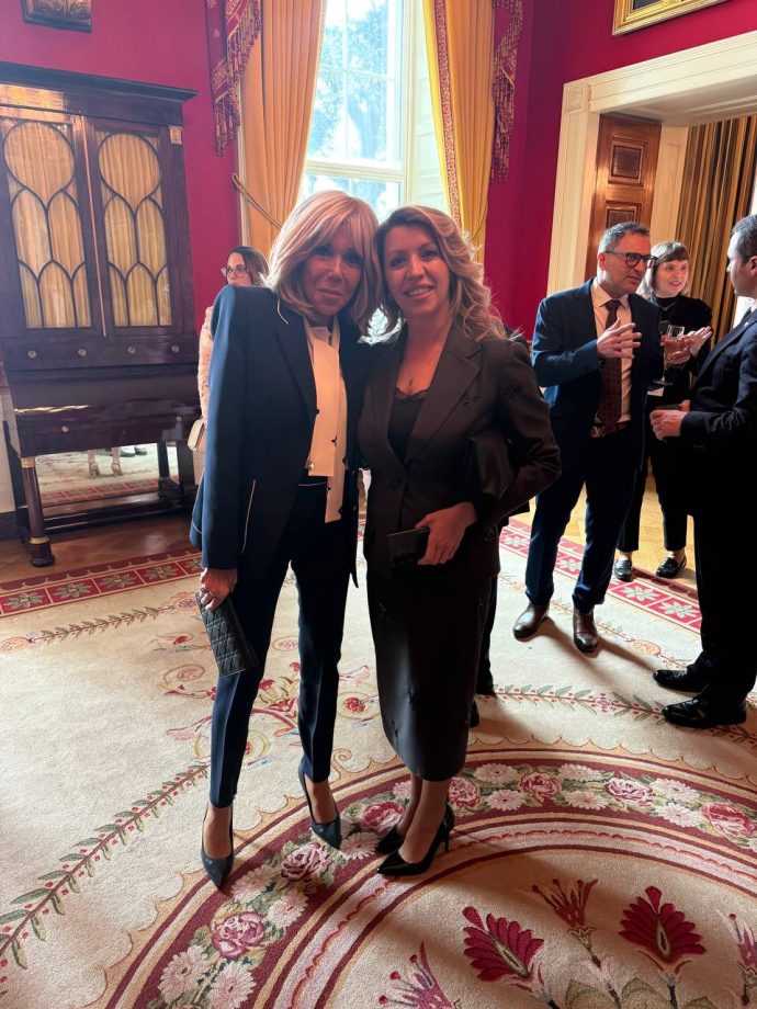 Во рамките на самитот, сопругата на премиерот, Рози Мицкоска оствари краток разговор и размени мислења со првата дама на Соединетите Американски Држави, Меланија Трамп како и со првата дама на Франција, Брижит Макрон.