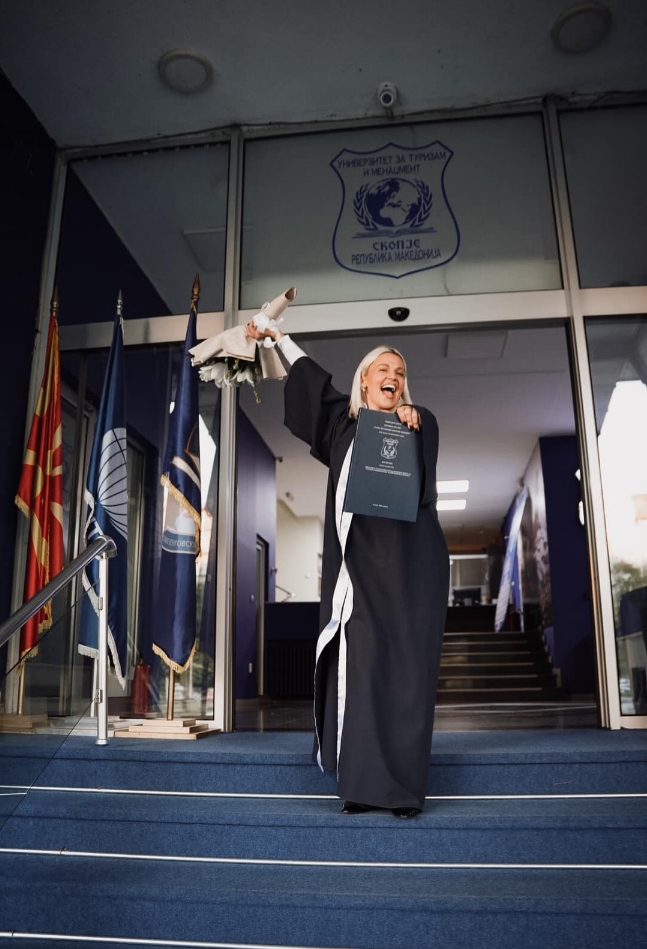 Несудена балерина, ама затоа можеби и иден маркетинг менаџер, ПР или менаџер за односи со јавност, како што и гласи универзитетската диплома и тоа со веќе стекната менаџерска пракса. Но не академска, туку онаа од младоста, кога со години беше менаџер на можеби најкултиот ноќен клуб во Македонија – „Хард Рок“, легендарната скопска дискотека од 90-ите.