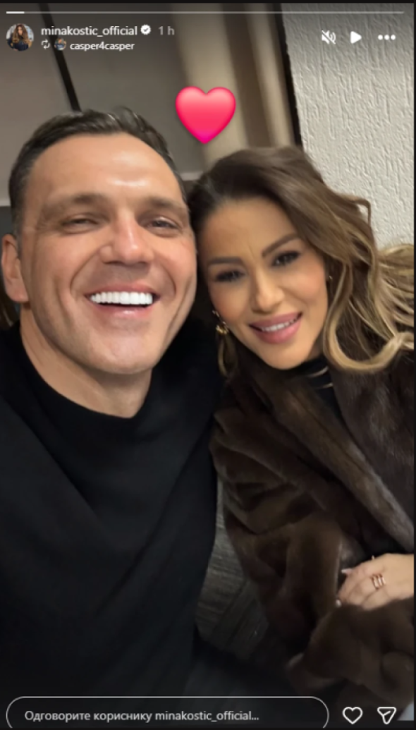 Пејачката Мина Костиќ го запозна своето момче Каспер во живо по шест месеци врска. Мина предизвика возбуда кога откри дека е во врска со бизнисмен кој се претстави како Каспер, иако никогаш не се запознале лично. Нивната романса, обвиткана во мистерија, беше потврдена кога Каспер се појави во живо во „Амиџи шоу“ и го откри својот идентитет.