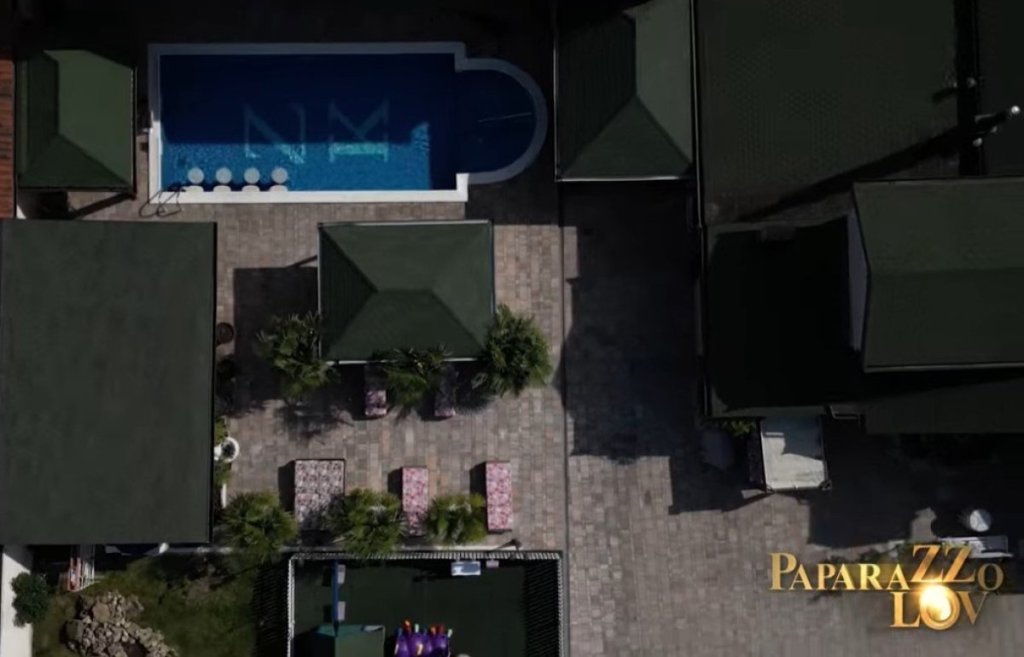Покрај неколкуте станбени згради, имаат и голем базен со нивните иницијали во дворот, викендица, и игротека со мебел за деца.
