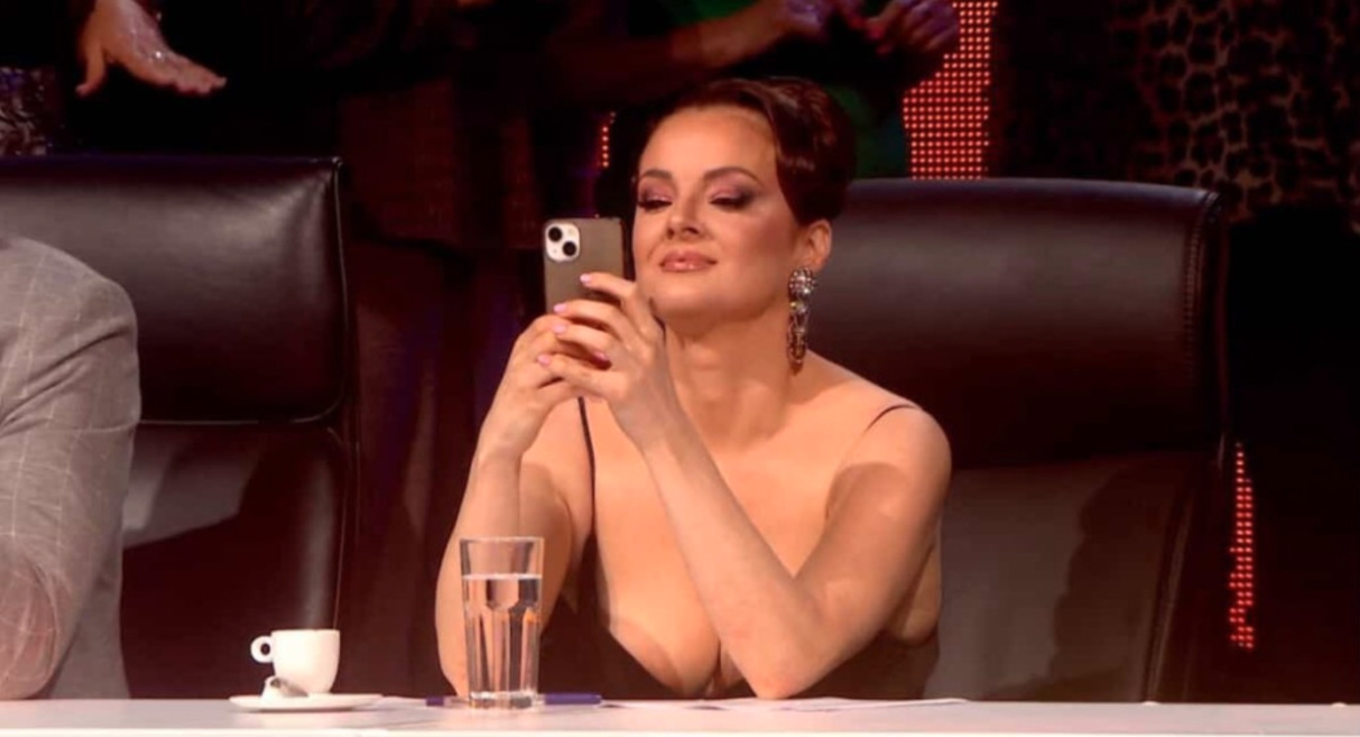 Пред натпреварувачкиот дел, пејачот Милош Бркиќ се качи на сцената и ја воодушеви својата колешка со својот настап. Во еден момент, Славица Ќуктераш го извади телефонот и почна да снима, а токму во тој момент нејзиниот фустан се помести настрана, а камерите снимија каков градник носи. Бидејќи за оваа пригода избра провокативен фустан со тенки прерамки, Славица Ќуктераш избрала силиконски, самолеплив градник во боја на кожа.