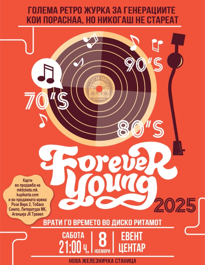Најдобрата ретро журка “FOREVER YOUNG 2025” за генерациите кои пораснаа, но никогаш не стареат.