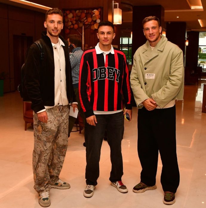 Ништо помалку дотерани по последна мода не се ниту другите. Никола Серафимов во лежерно издание, со тековни модни тенденции во слоевита комбинација од принт баги крој панталони, маичка , џемперче и бомбер јакна.