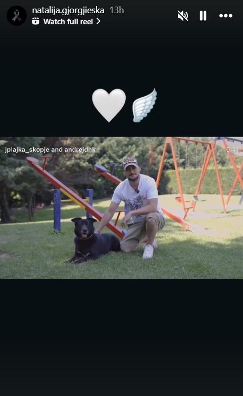 Во видеото од ЈП „Лајка“, која таа го сподели на кратката приказна на социјалната мрежа Инстаграм, Андреј апелира за вдомување на кучето Макс, оставено од неговите сопственици, потсети дека музичарот недостига уште повеќе, а на видеото додаде бело срце во комбинација со ангелски крилја како симбол за неговата чиста, небесна љубов, духовна заштита, ангелска присутност и вечен живот.