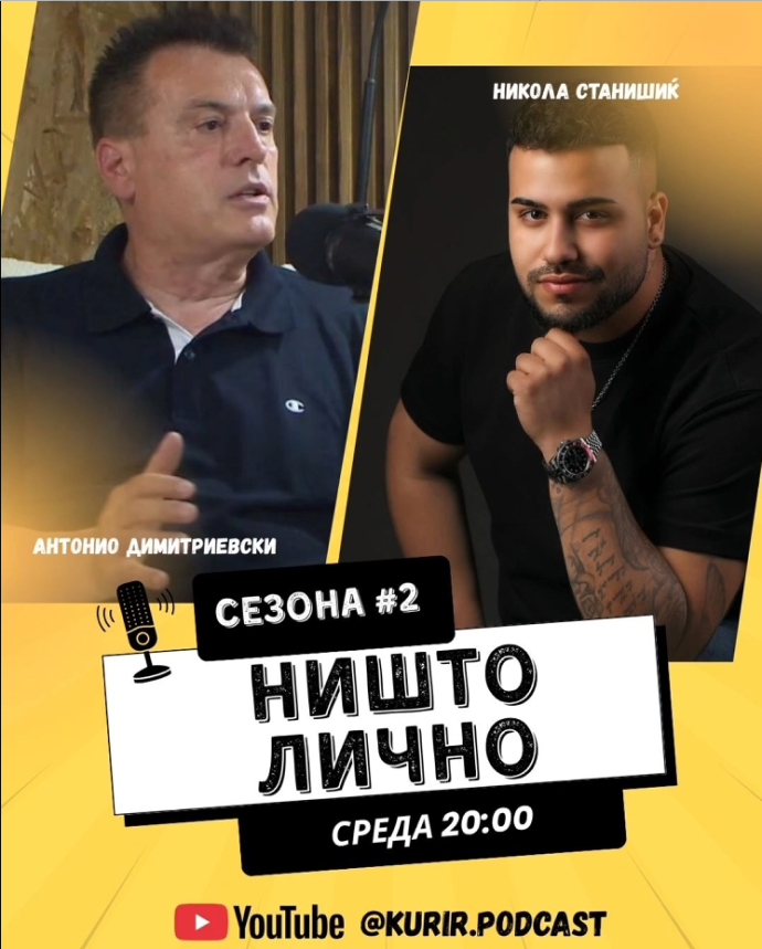 Премиерното издание на поткастот оди секоја среда од 20.00 часот, но ако од било која причина сте ја пропуштиле премиерата, оваа како и сите досегашни епизоди на интер ток шоуто „НИШТО ЛИЧНО“, можете да ги погледнете во било кое време, 24/7 ексклузивно само на YouTube каналот на КурирМК (.