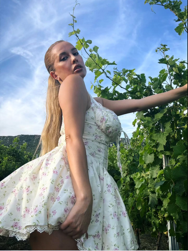 Хрватската секс бомба и пејачка Нивес Целзиус повторно ги „запали“ социјалните мрежи со серија провокативни фотографии овојпат од лозјата.