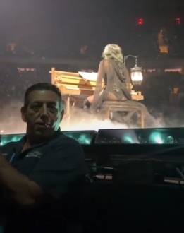 На видеото се гледа маж свртен кон публиката како пее, а потоа скришум погледнува кон бината на која настапува Гага. Објавата собра повеќе од 184.000 прегледи и 12.000 лајкови, а не е познато кој првично го снимил видеото.