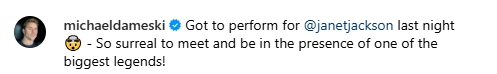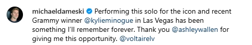 Права танц ѕвезда, со освоени први места на светски танцови првенства, победник на шоуто So you think you can dance Australiа, беше втор во американското шоу World of Dance, играше во мјузиклот “Били Елиот” во Австралија, потоа и на Бродвеј. Огромно браво, горди сме на тебе!“ – споделила Рашиќ покрај заедничката фотографија на музичката и танчерската ѕвезда.