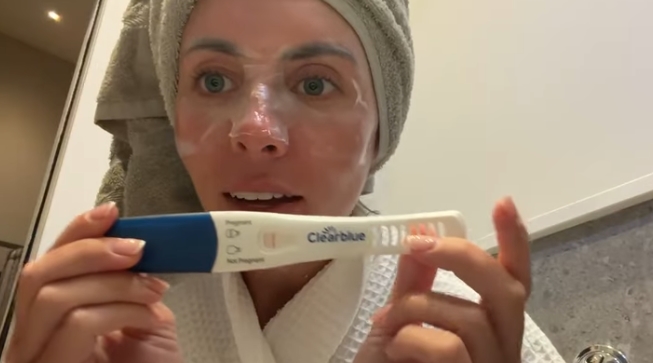По неколку дена закрепнување дома, таа одлучи да направи тест за бременост. Во видеото, седејќи на тоалетот, таа објасни: „Една линија значи дека сум бремена, ниту една ако не сум“, истакнувајќи дека тестот работи навечер, а не наутро.