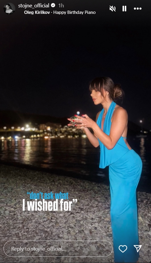 Подоцна, на краките приказни сподели и фотографија по повод роденденот, а во описот на фотографијата напиша : „Не прашувајте, што посакав“, на англиски јазик.