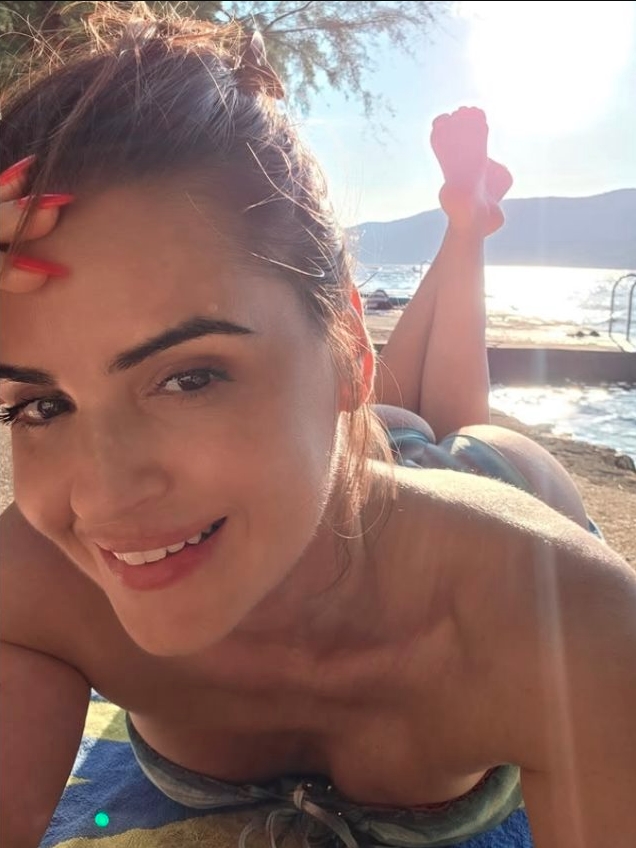 Неодамна таа прати поздрав од Хрватска, создавајки спомени од одморот од ова лето. Па, така додека уживала на плажата испружена на пешкирот во опуштено издание, се фотографирала во истата поза како и сега.