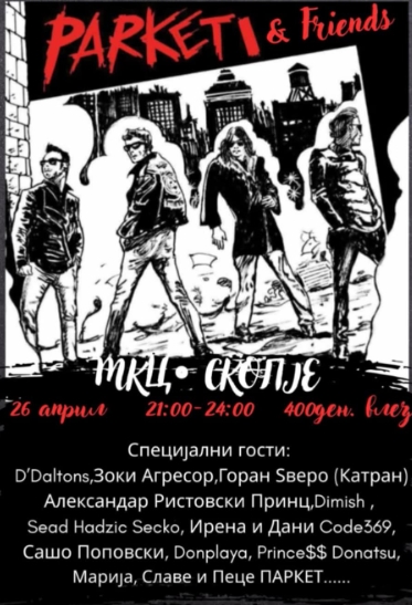 Битолскиот рокенрол бенд „Паркети“ најавува спектакуларен концерт на 26 април во Младинскиот културен центар во Скопје. Под насловот „Паркети и пријатели“, овој настан ќе обедини бројни музички имиња и љубители на рокенролот.
