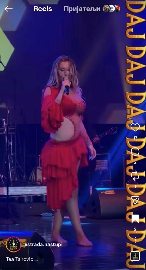 На социјалните мрежи се појави видео од настапот на Теа Таировиќ, кое веднаш предизвика лавина од коментари – обожавателите се прашуваат само едно: Дали пејачката е бремена?