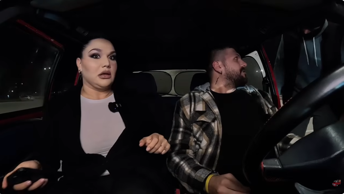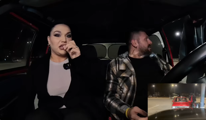 Овој пат домаќинот не случајно избрал разговорот со пејачката да го води навечер, па ноќното возење со „скриени намера“ наместо скриена камера за малку ќе се претвореше во „шлог пред камера“… Секако за македонската пејачка на која домаќинот и приреди „смрзнувачка“… од страв, се разбира!